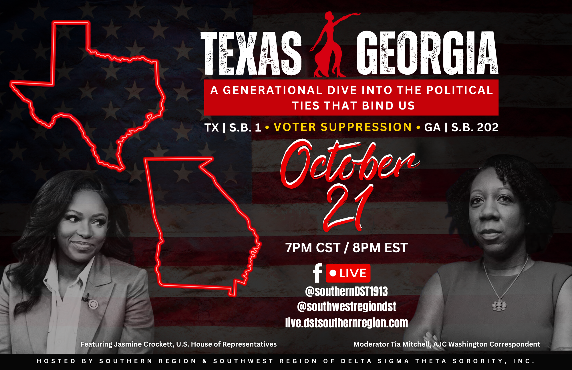 21oct8:00 pm9:00 pmVirtual EventLIVE Event - 10/21, 8pm EST: Texas and Georgia: A Generational Dive into the Political Ties that Bind Us8:00 pm - 9:00 pm(GMT-04:00)